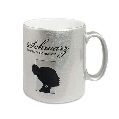 Glitzertasse im Metallic-Look silber mit Wunschdruck